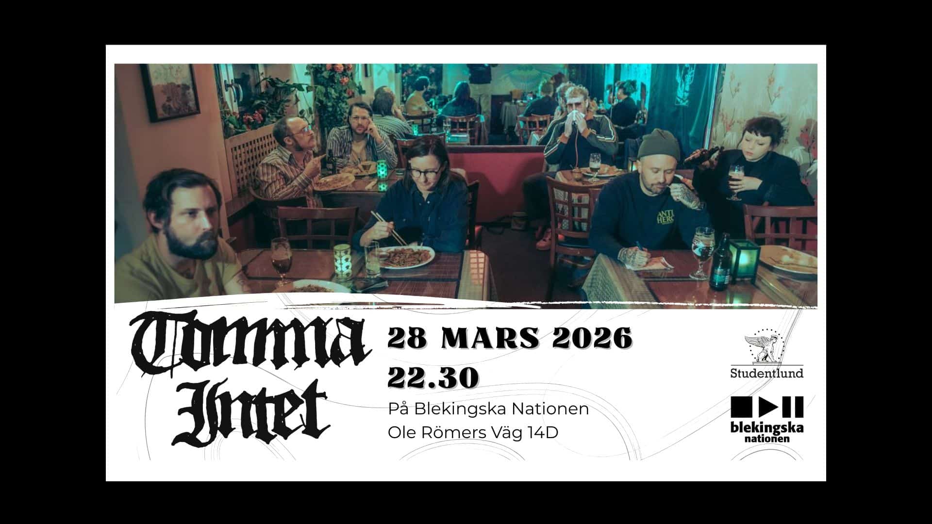 Blekingska nationen presenterar TOMMA INTET! Den 28 mars kommer bandet till Blekingska, och du kan skaffa biljetter redan nu! TOMMA INTET är ett kollektiv med […]